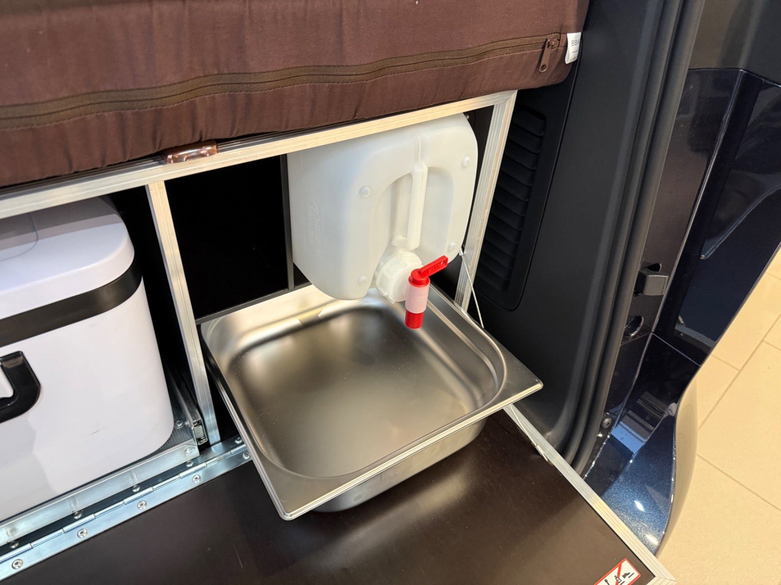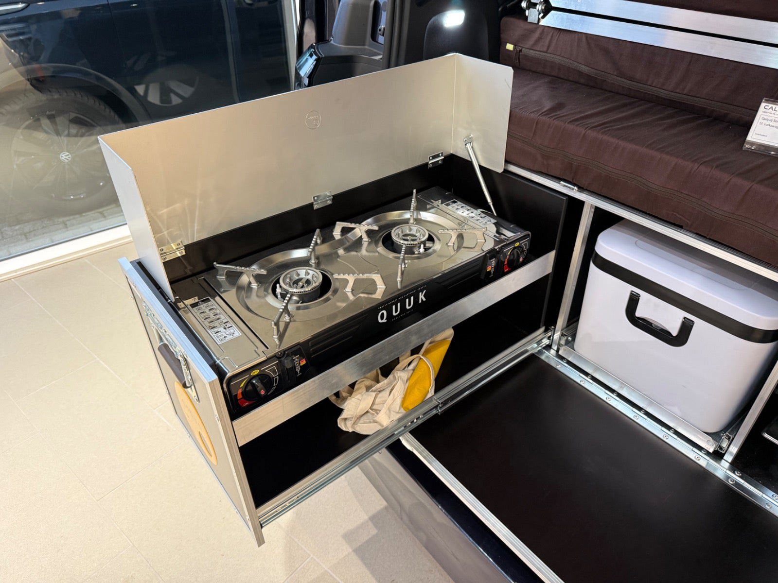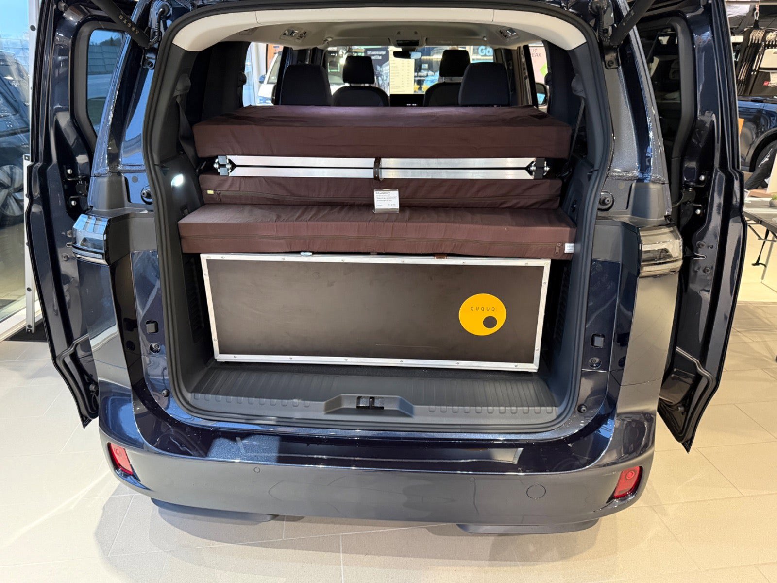 Calishop drejesokler på forsæderne - 11.000 kr. Campingboks med køkken til Buzz - 30.495 kr. Kompressor køleskab til camping boks - 2.036 kr. Tagbagagebærer LWB - 11.380 kr. Front Runner tagtelt til ID.Buzz - 9.420 kr. Monteringssæt: Quick release tagtelt - 1.060 kr. Vindskærm til Front Runner tagbagegebærer - 1.320 kr. Monteringssæt til markise - 930 kr. Wolf Pack Pro kasse 2 stk - 920 kr. Wolf Pack Pro monteringsbeslag 2 stk - 1.080 kr. Vandtank 42 liter med beslag - 1.560 kr. Tap udvidelsesbeslag til vandtank - 620 kr. Front Runner Markise 2,5 meter - 3.260 kr.